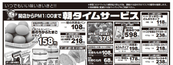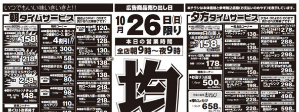 スーパーヤオスズのお買い得情報が満載のチラシをご覧いただけます。毎日のタイムサービス情報をはじめ、お野菜やお肉、お魚などの日替わりのお得な情報も掲載していますので、内容をご覧になり、スーパーヤオスズ各店鋪へご来店ください。 2025.10.31 更新 11月2日(日)〜8日(土) 2025.10.24 更新 10月26日(日)〜11月1日(土) 新鮮で、安心、安全な食の提供、そして地域の皆さまの健康的な生活のお役に立てる店でありたいと願っています。 地元のお客様に頼りにされるスーパーマーケットであり続けるよう、日々努力してまいります。